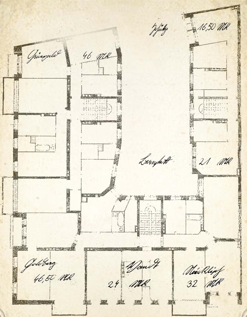 handschriftlich von Gustav Weiszheit eingetragen die Mieter und Miethöhen, ca. 1905